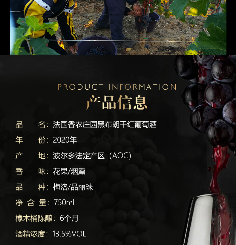 CHATEAU LOUIS2020年 香农庄园黑布朗干红葡萄酒 法国波尔多原瓶原装进口 黑布朗单支装