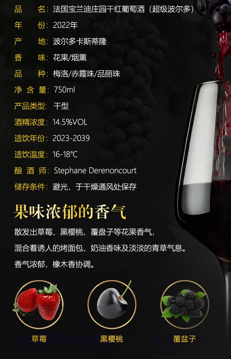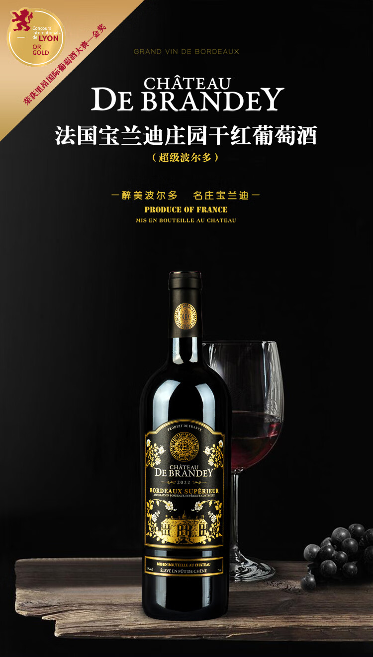 下一个:路易城堡【宝兰迪庄园】2022年份古堡 法国波尔多原瓶原装进口干红葡萄酒 750ml单支装红酒