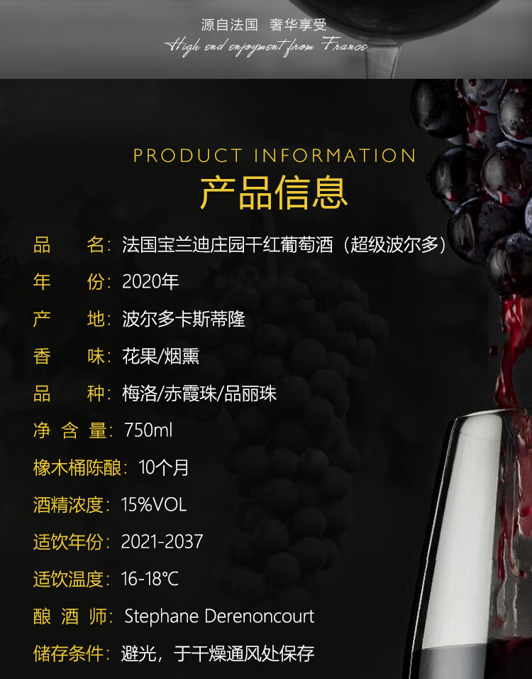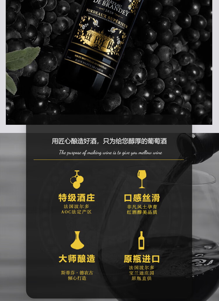 下一个:CHATEAU LOUIS【宝兰迪庄园】2022年份珍藏干红葡萄酒 法国波尔多原瓶原装进口 750ml单支装红酒